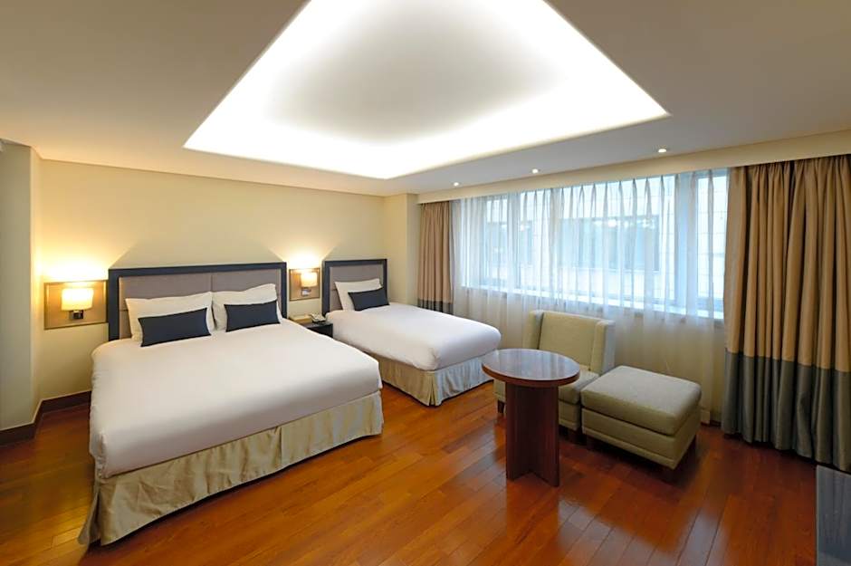 Room choices range from the Standard Room with a Queen-size bed to suites with tower or mountain views. For example, the Suite Namsan, Tower View offers a Double plus a Twin bed, while the Suite, Mountain View spans a spacious layout with a Twin and a Queen bed. Deluxe options include configurations such as Deluxe, 2 Double and Deluxe, Queen/Single, providing flexible layouts for couples, families, or small groups.